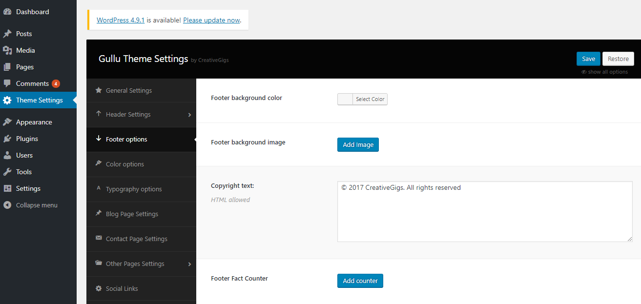 You can configure the footer area of the theme from the settings option. You will find all relevant section settings to the «Footer» option. Navigate to Theme Options > Footer Settings to go to this settings section. We provided all necessary instructions and descriptions with all the options.